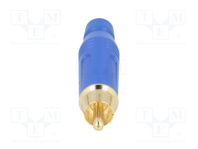 Вилка; RCA; "папа"; прямой; пайка; синий; позолота; на провод; 3÷7мм
