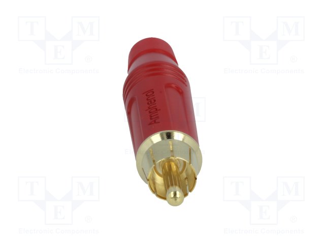 Вилка; RCA; "папа"; прямой; пайка; красный; позолота; на провод