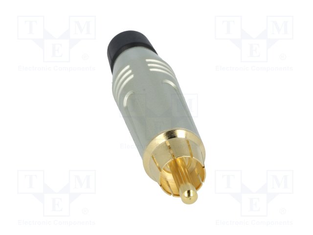 Вилка; RCA; "папа"; прямой; пайка; серый; позолота; на провод; 3÷7мм