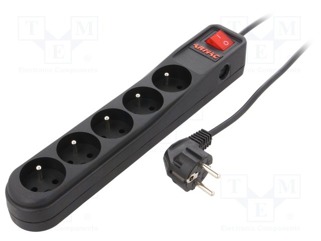 Сетевой фильтр: защитный; Гнезда: 5; 250ВAC; 10А; Цвет: черный