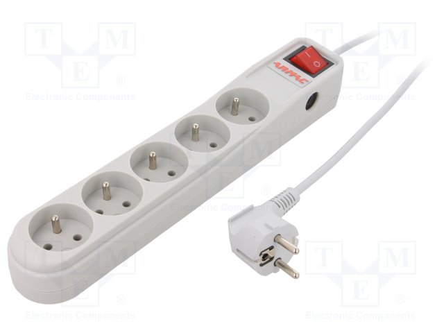 Сетевой фильтр: защитный; Гнезда: 5; 250ВAC; 10А; Цвет: серый