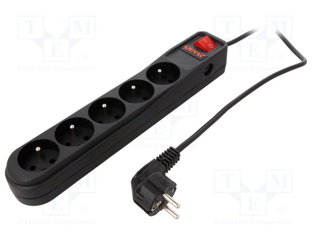 Сетевой фильтр: защитный; Гнезда: 5; 250ВAC; 10А; Цвет: черный
