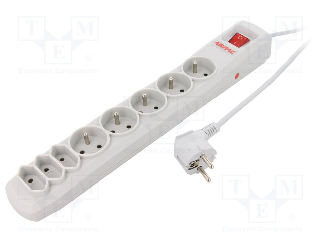 Сетевой фильтр: защитный; Гнезда: 8; 250ВAC; 10А; Цвет: серый