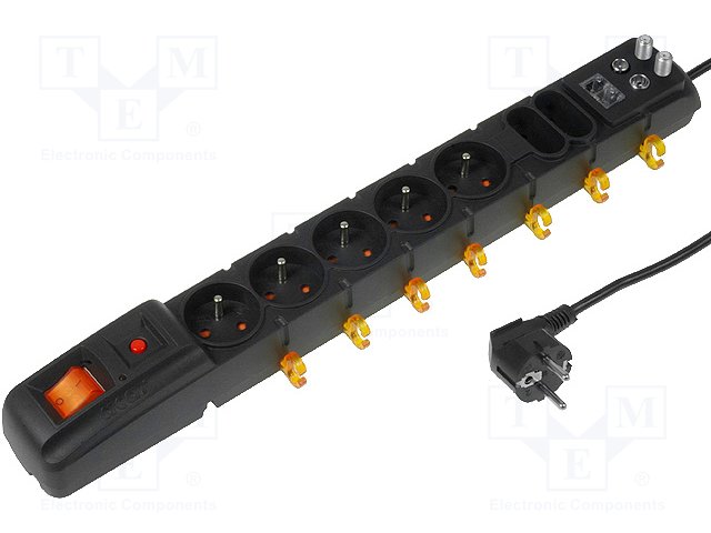 Сетевой фильтр: защитный; Гнезда: 7; 230ВAC; 10А; Цвет: черный; 480г
