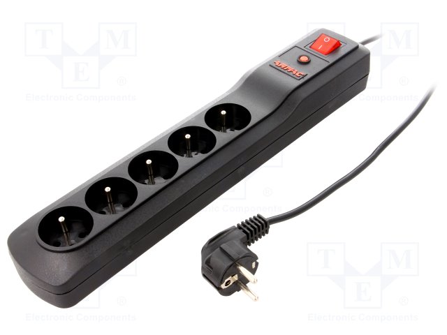 Сетевой фильтр: защитный; Гнезда: 5; 250ВAC; 10А; Цвет: черный