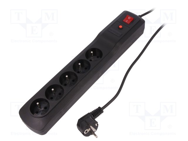 Сетевой фильтр: защитный; Гнезда: 5; 250ВAC; 10А; Цвет: черный