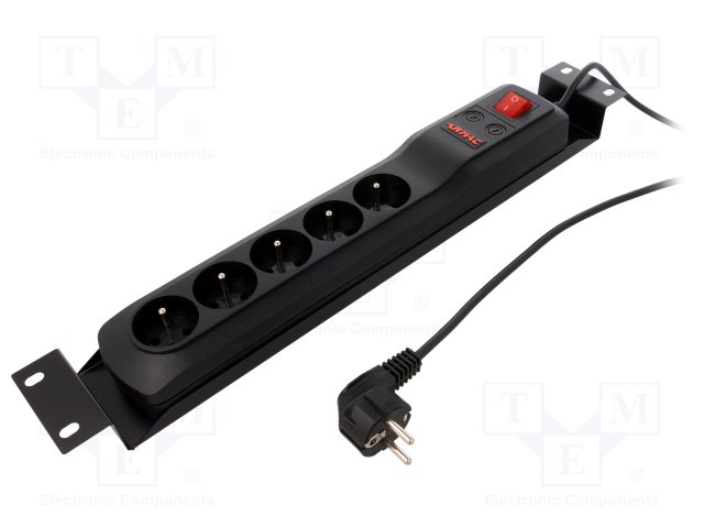 Сетевой фильтр: защитный; Гнезда: 5; 250ВAC; 10А; Цвет: черный