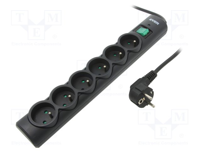 Сетевой фильтр: защитный; Гнезда: 6; 250ВAC; 10А; Цвет: черный
