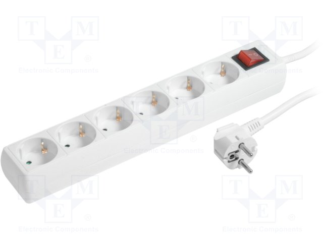 Сетевой фильтр: защитный; Гнезда: 6; 230ВAC; 16А; Цвет: белый; 1,5м