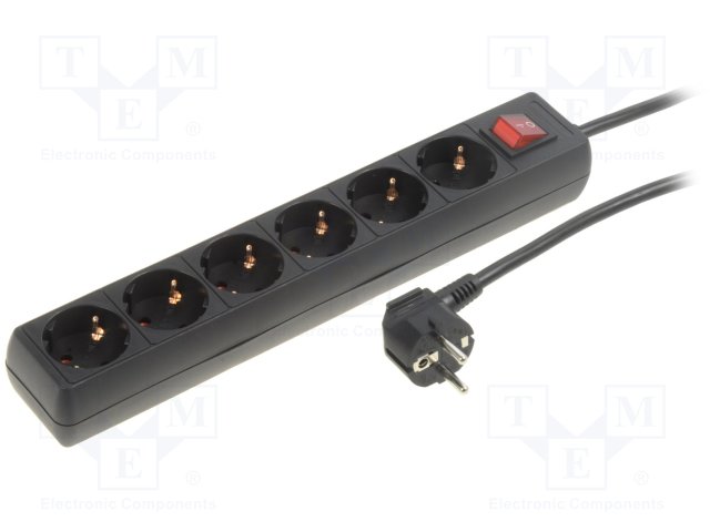 Сетевой фильтр: защитный; Гнезда: 6; 230ВAC; 16А; Цвет: черный; 1,5м
