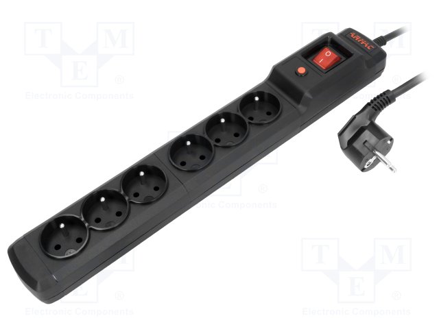 Сетевой фильтр: защитный; Гнезда: 6; 250ВAC; 16А; Цвет: черный