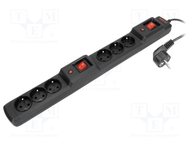 Сетевой фильтр: защитный; Гнезда: 6; 250ВAC; 10А; Цвет: черный
