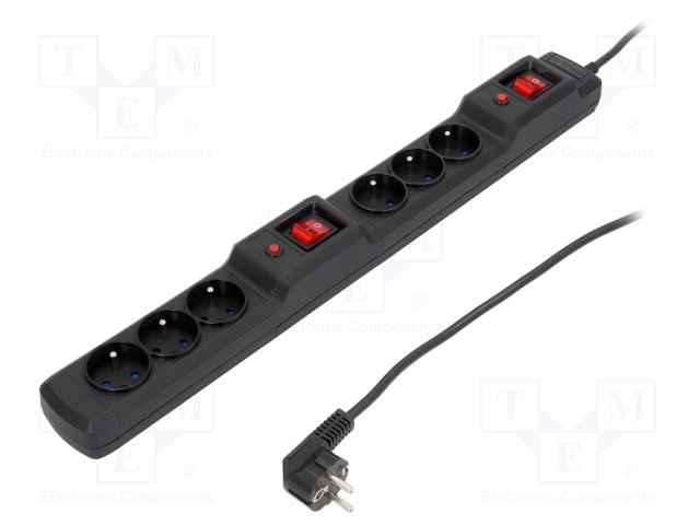 Сетевой фильтр: защитный; Гнезда: 6; 250ВAC; 16А; Цвет: черный