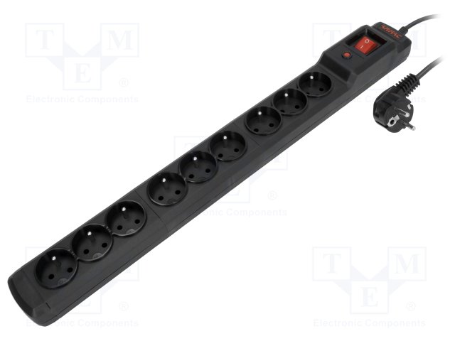 Сетевой фильтр: защитный; Гнезда: 9; 250ВAC; 10А; Цвет: черный