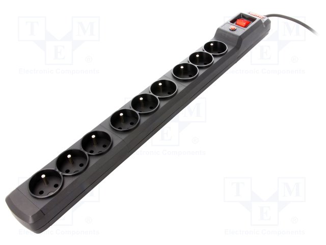 Сетевой фильтр: защитный; Гнезда: 9; 250ВAC; 16А; Цвет: черный