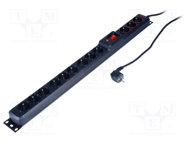 Сетевой фильтр: защитный; Гнезда: 12; 250ВAC; 16А; Цвет: черный