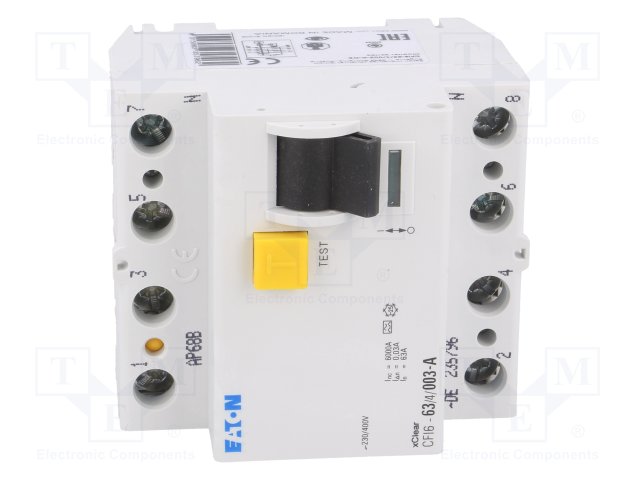 Аварийный выключатель; Iном: 63А; Iдифф: 0,03А; Ударный ток: 250А