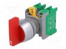 Switch: rotary; 1-position; NC + NO; 3A/230VAC; 22mm; red; IP65