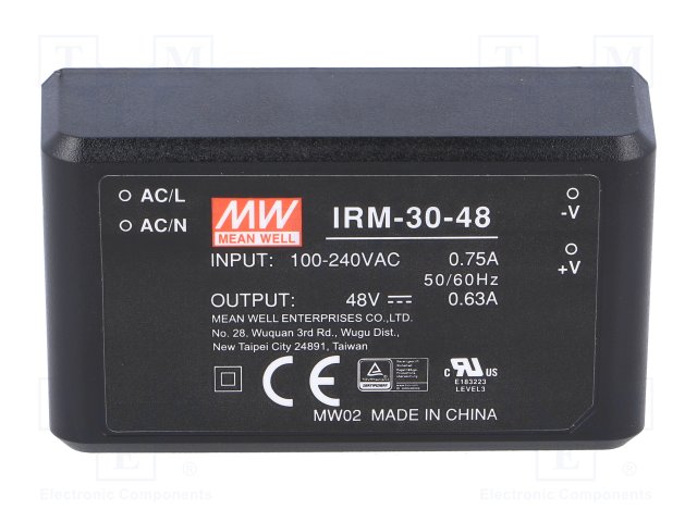 Блок питания: импульсный; модульный; 30,2Вт; 48ВDC; 69,5x39x24мм
