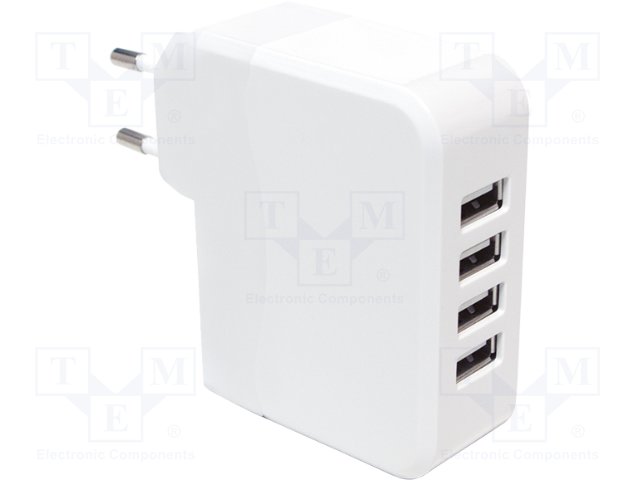 Блок питания: импульсный; 5ВDC; 4,9А; Вых: USB x4; 24,5Вт; Вилка: EU