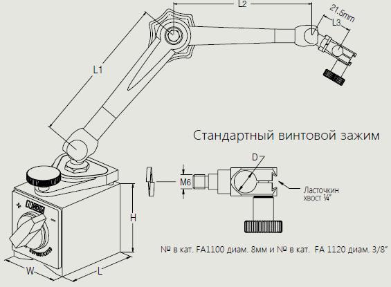 8мм или 3/8”, а также крепление «ласточкин хвост» . Механическое центральное крепление с уникальной пружинной системой разработанной компанией Noga. Штатив имеет 5 сопряженных направляющих элементов. Мгновенная фиксация в любом положении. Лёгкая и быстрая установка измерительной головки в необходимую позицию. Отполированная и окрашенная в чёрный цвет поверхность рычагов.