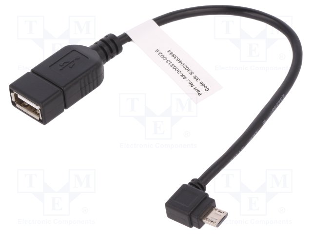 Кабель; OTG,USB 2.0; гнездо USB A,угловая вилка micro USB B
