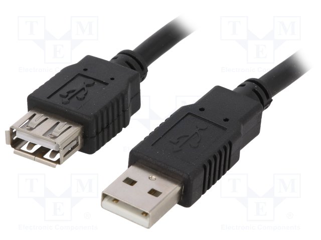 Кабель; USB 2.0; гнездо USB A,вилка USB A; 1,8м; черный