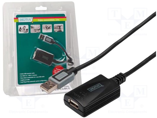 Репитер USB; USB 2.0; гнездо USB A,вилка USB A; 5м; блистер