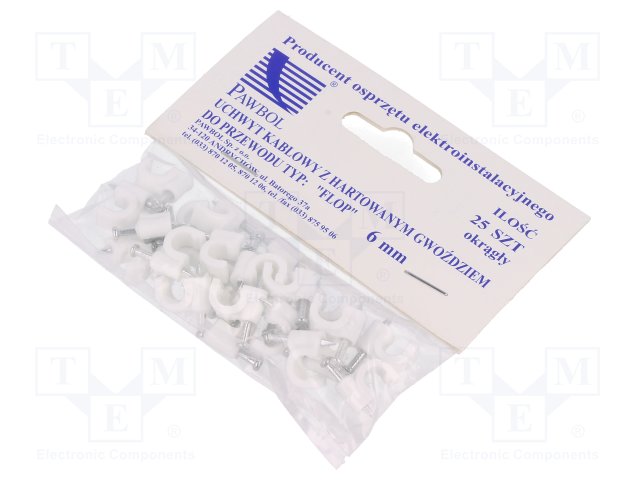 Держатель; белый; Применение: на круглый провод; 25шт; с гвоздем