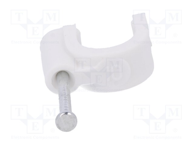 Держатель; белый; Применение: на круглый провод; 100шт; с гвоздем