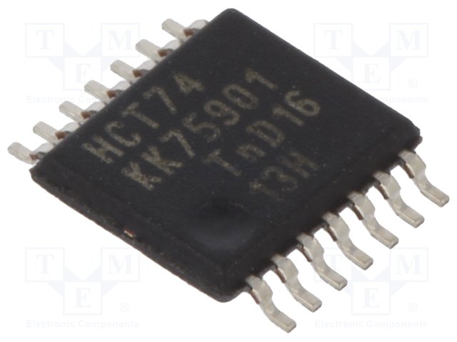 IC: цифровая; D триггер; Каналы: 2; IN: 4; HCT; SMD; TSSOP14