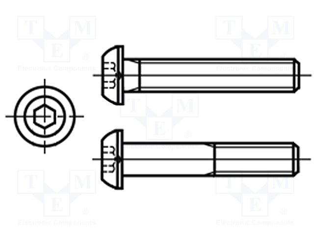 Винт; M6x20; Головка: сферическая; шестигранный; HEX 4мм