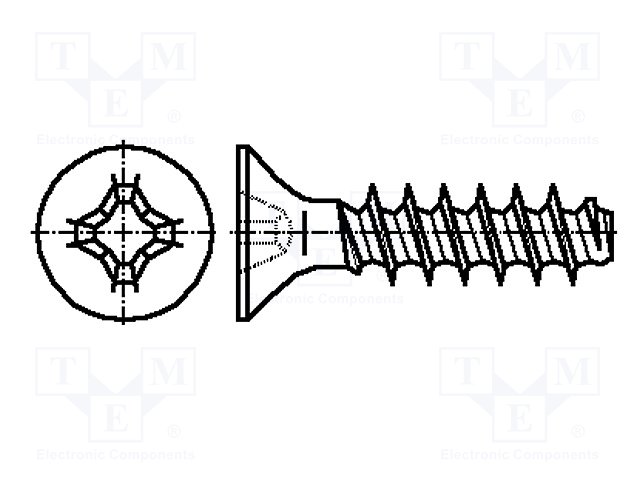 Винт; 2,5x10; Головка: потайная; Phillips; сталь; цинк; Размер: PH1