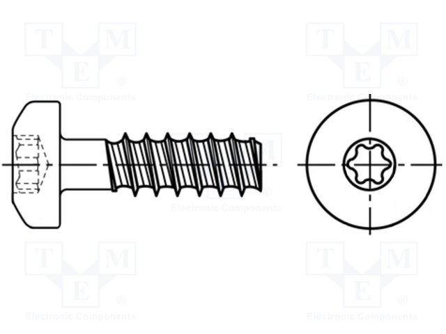 Винт; для термопластов; 2,5x12; Головка: цилиндрическая; Torx®