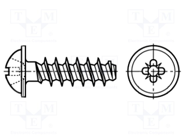 Винт; для термопластов; 5x12; Головка: цилиндрическая; Pozidriv