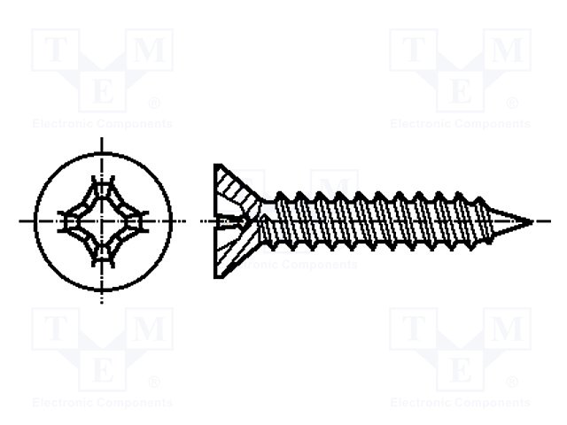 Винт; 2,9x9,5; Головка: потайная; Phillips; Размер: PH1; DIN: 7982C