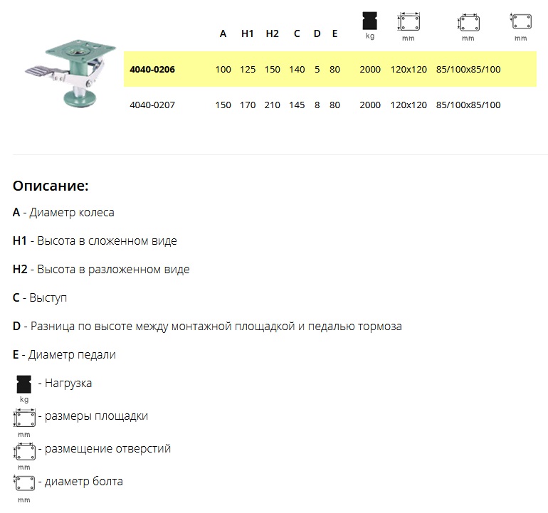 Тормоз; Ø: 100мм; 2000кг; Мат-л: нержавеющая сталь