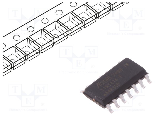 Микроконтроллер AVR; EEPROM: 128Б; SRAM: 256Б; Flash: 4кБ; SO14