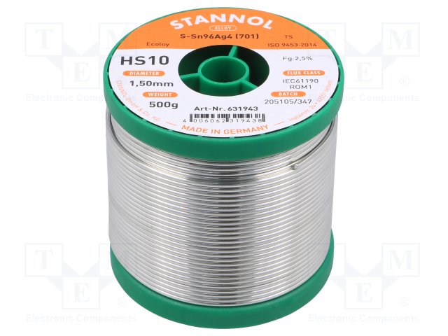 Проволочный припой; Sn96Ag4; 1,5мм; 0,5кг; не содержит свинца
