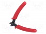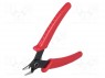 Характеристики щипцов/ножей возвратная пружина, поверхность черненая, режущие кромки без фаски, ручки с пластиковыми накладками, сужающиеся губки изогнуты под углом 45°