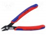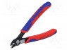 Характеристики щипцов/ножей возвратная пружина, губки соединены без люфта заклепкой из нержавеющей стали, дополнительная пружина, ограничивающая разлет обрезков проволоки, , на ручках - эргономичные пластиковые накладки, ограничитель раскрытия, поверхность черненая, режущие кромки без фаски, режущие кромки индукционной закалки