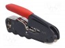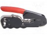 Характеристики инструментов для заделки концов блокиратор размыкания губок, корпус частично покрыт цинковым сплавом, можно снимать изоляцию и резать плоский кабель, на ручках - пластиковые эргономичные накладки, поверхность черненая, полукруглый вырезз, позволяющий снимать изоляцию с кабеля, современная конструкция