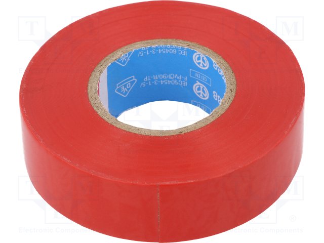 Изоляционная лента; ПВХ; 19мм; L: 20м; красный