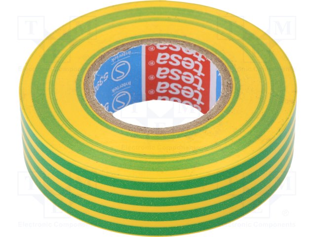 Изоляционная лента; ПВХ; 19мм; L: 20м; желто-зеленый