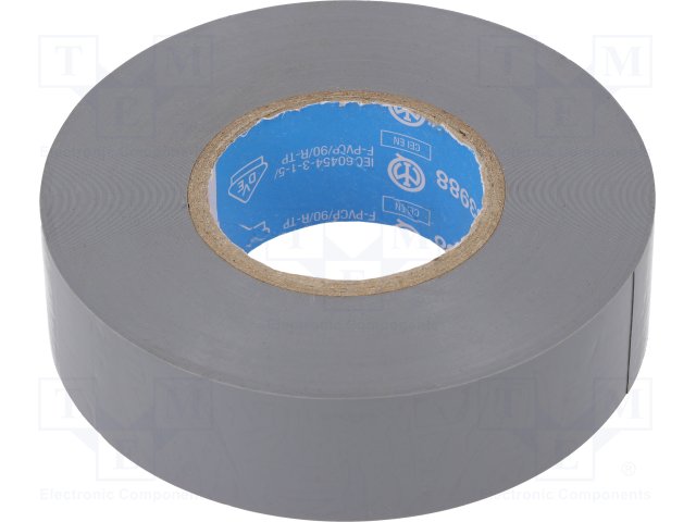 Изоляционная лента; ПВХ; 19мм; L: 25м; серый