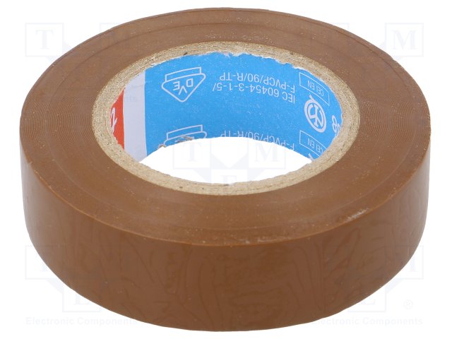 Изоляционная лента; ПВХ; 19мм; L: 33м; коричневый