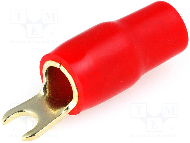 Наконечник: вилочный; M4; 20мм2; позолота; изолированный; красный