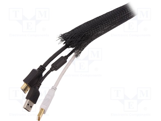 Velcro braided; polyester; 90mm; ØBraid : 32mm; black; Package: 25m