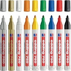 Универсальные лаковые маркер Edding 8750 и серия 750, 751, 780, 790 предназначен для нанесения надписей в промышленных условиях. Применяется для письма на жирных, пыльных, грязных поверхностях. Устойчив к кислотам, растворителям, механическому истиранию. Чернила Edding содержат высокую концентрацию пигмента, что позволяет им хорошо ложиться на гладкие и шероховатые поверхности. Специальные добавки, в веденные в состав маркера Edding растворяют масляную пленку на поверхности письма. Непрозрачные лаковые чернила позволяют делать хорошо заметные надписи густым плотным слоем даже на темных поверхностях. Надписи обладают термостойкостью до +400?С. Надписи цветами 05-010, 049, 054 видимы до +1000?С.