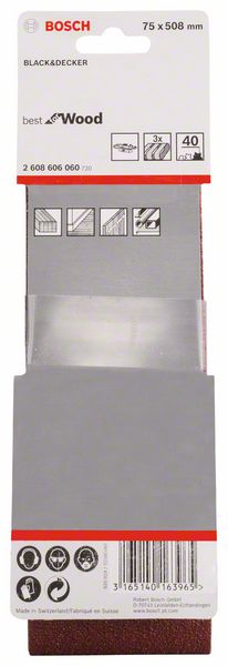 Набор из 3 шлифлент X440 75 x 508 мм, 40